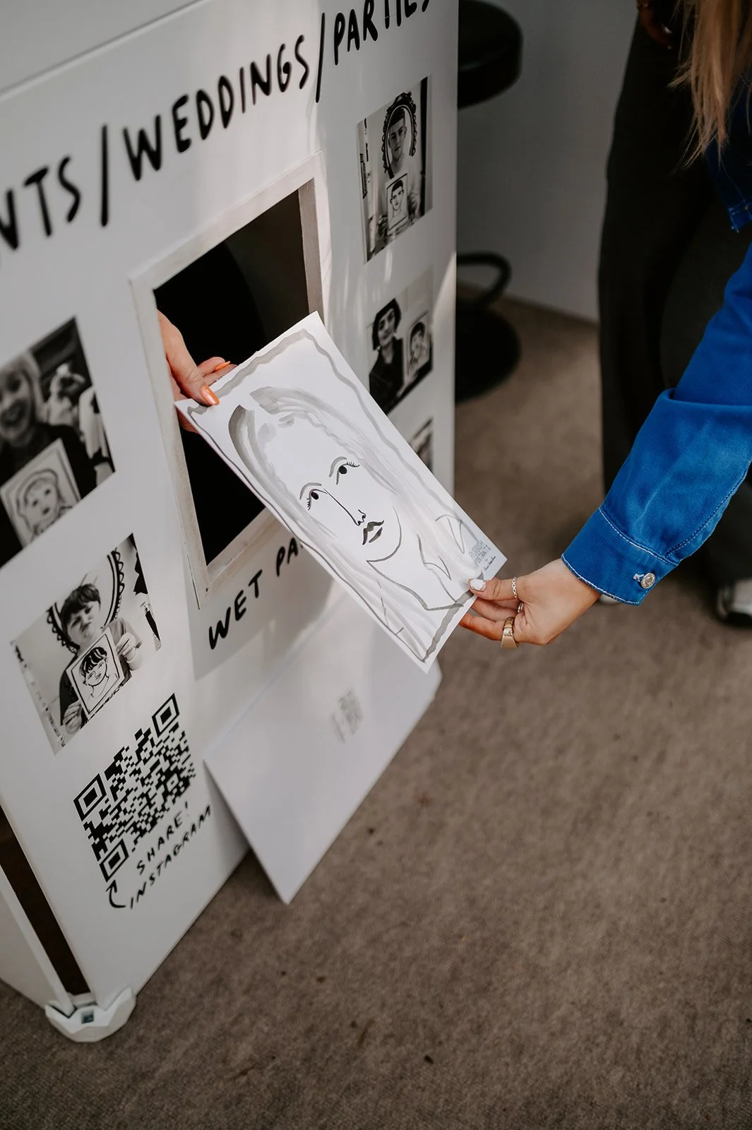 The portraits spark instant chat, laughter, and movement around the booth. It adds buzz to your event and helps break the ice between guests. A great interactive guest entertainment idea.