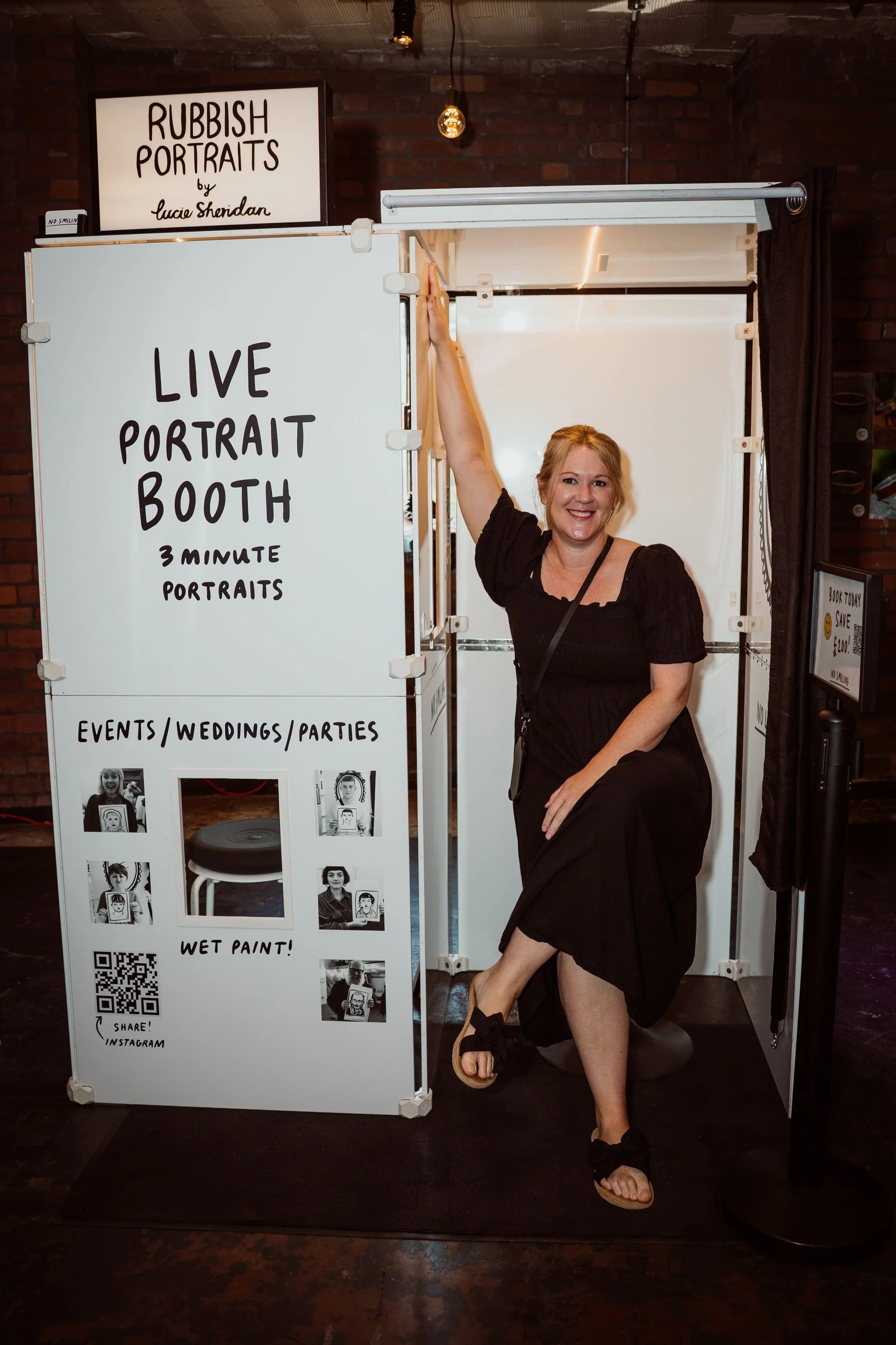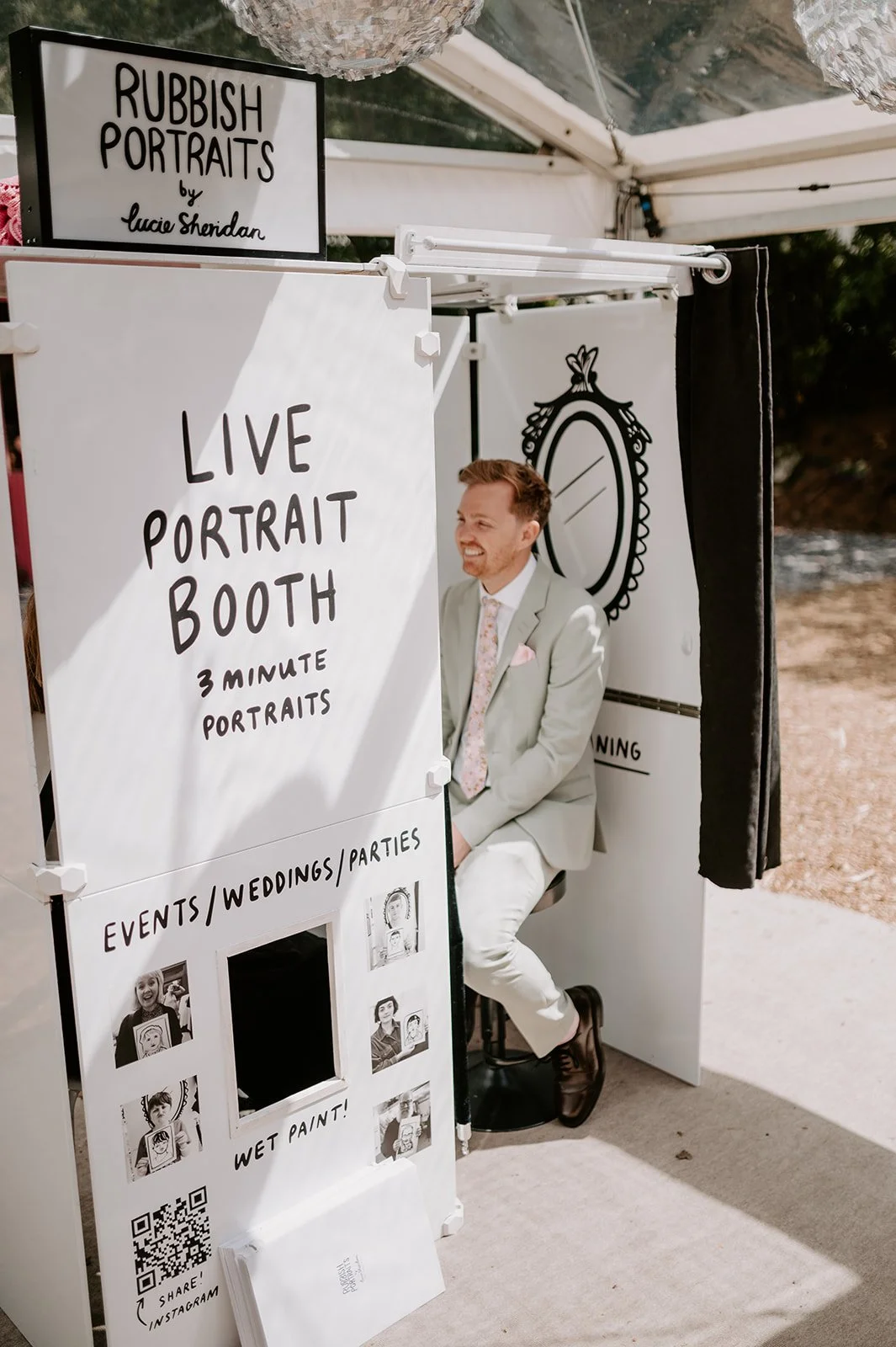 Introducing Rubbish Portraits - not your average photo booth. Sit in my live pop-up portrait booth and have your portrait drawn by myself, Lucie Sheridan, in just three minutes. My booth is the first of its kind and is perfect for events of all shapes and sizes. The best part is your guests will leave with a one-of-a-kind keepsake to remember your event.